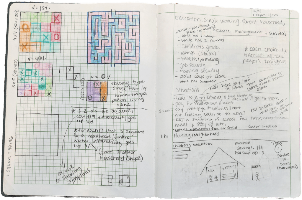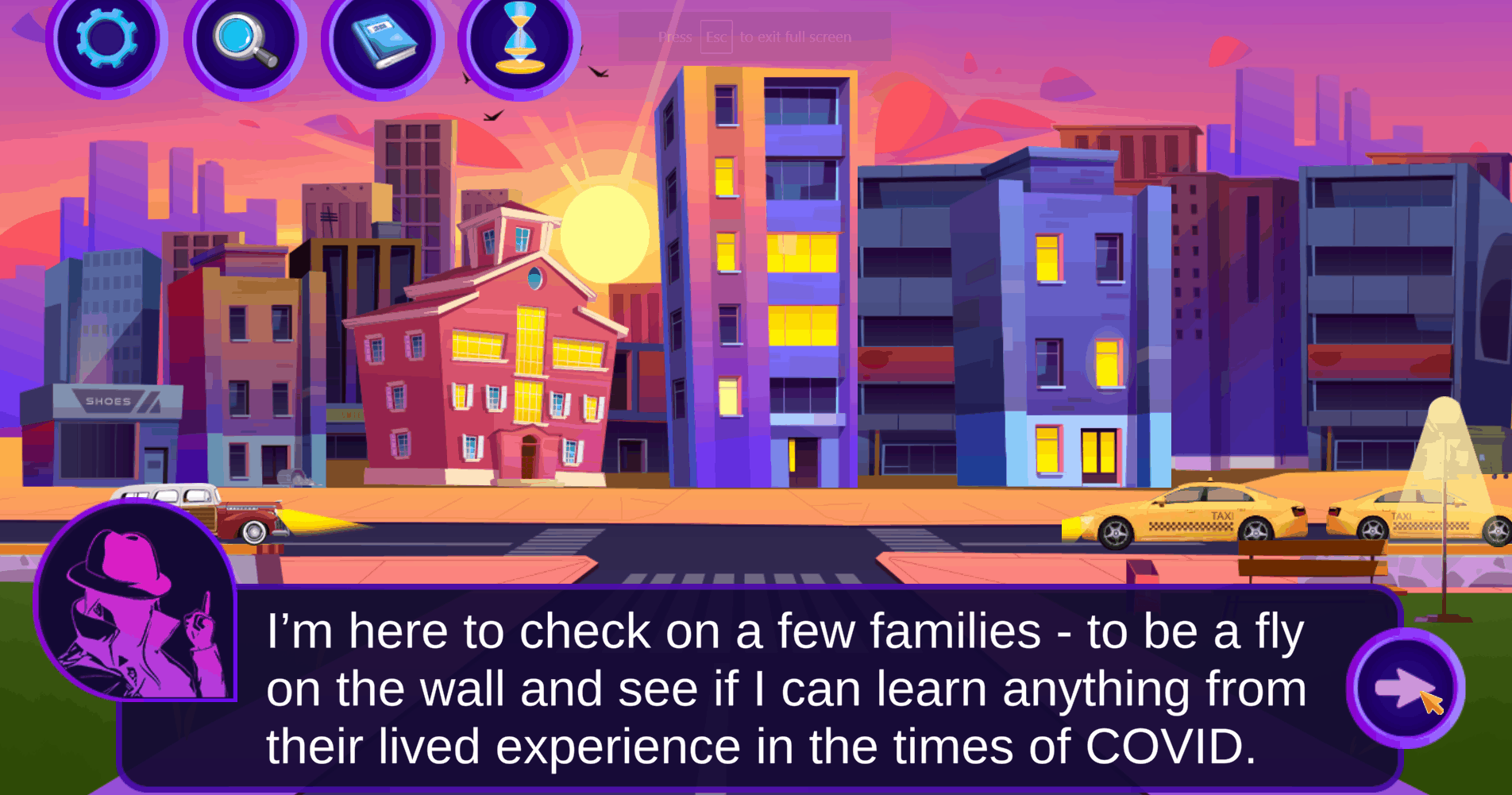 This mini-game depicts how a person’s housing situation can impact them during times of crisis; in this case, their vulnerability to contracting COVID-19.